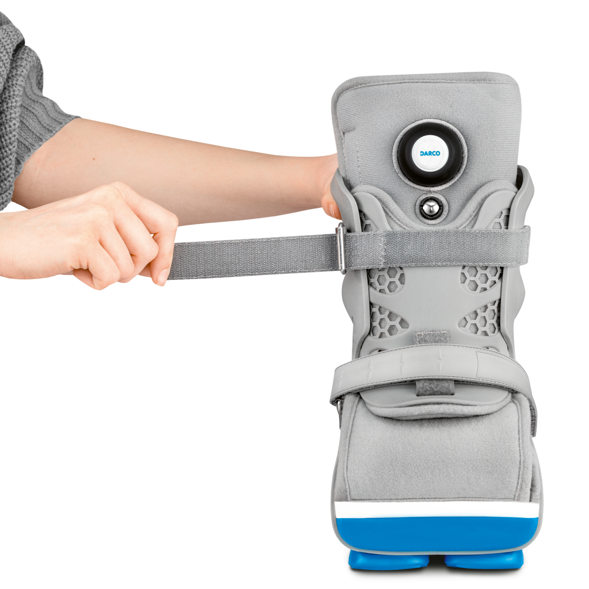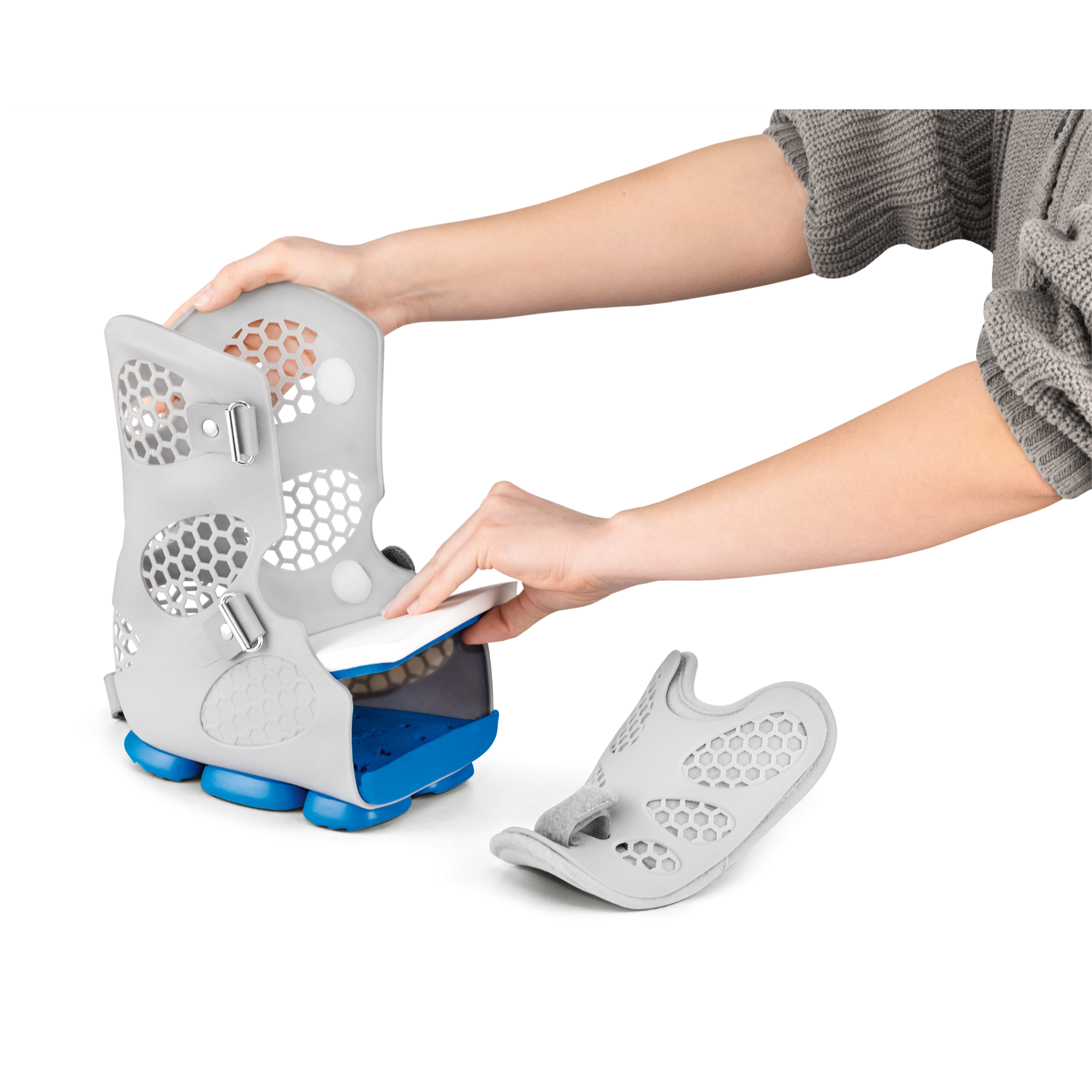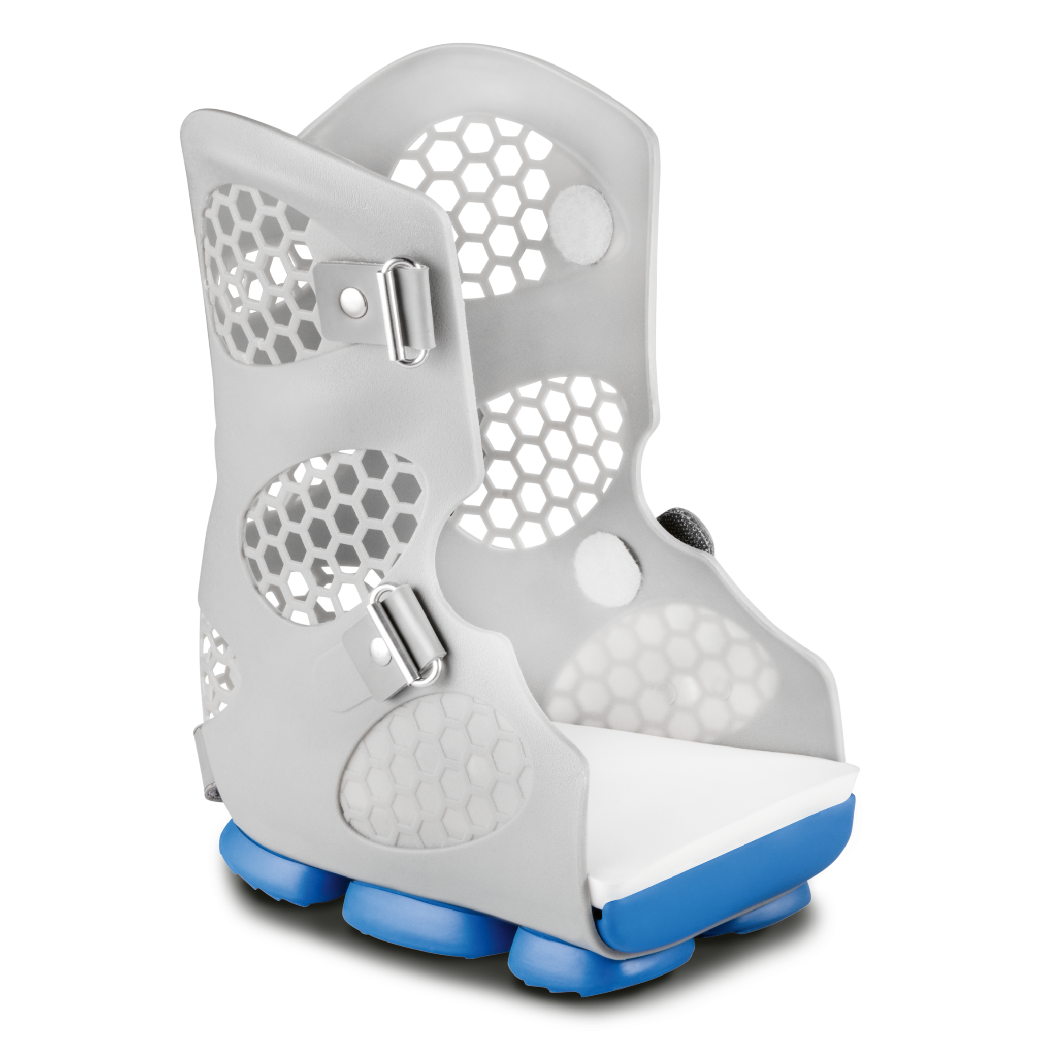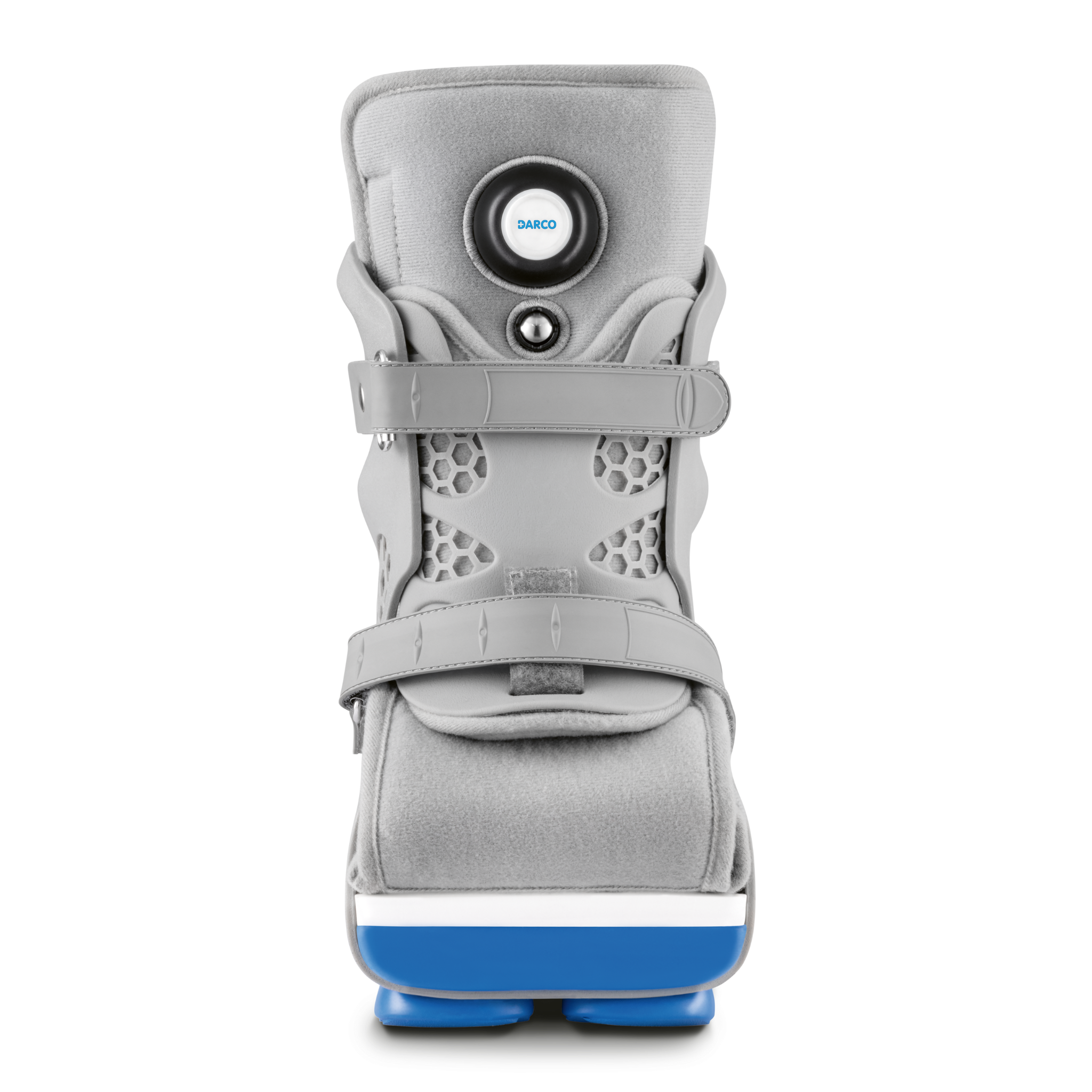 The Body Armor® PFA Walker is a time-saving interim orthosis designed to support post-surgical healing following a partial foot amputation, offering reliable protection and adaptable support throughout the healing process. Its soft interior lining features an integrated air pump for even pressure distribution, while the rigid outer shell ensures secure stabilization. Engineered for patient comfort and ease of use, the walker includes a wide opening for effortless applications and is available in three sizes (M–XL) to optimize fit. The innovative PowerPod® EVA outsole makes the walker 25% lighter than previous models, while providing excellent traction, shock absorption, and slip resistance. Designed with a ventilated honeycomb pattern to encourage airflow and beveled construction to promote natural posture, the Body Armor® PFA Walker supports comfortable healing while empowering mobility.